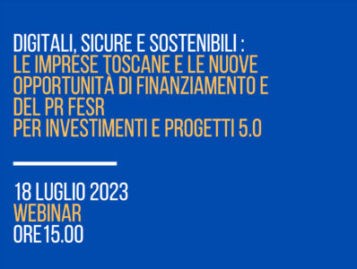 Webinar “Digitali, Sicure e Sostenibili: le imprese toscane e le nuove opportunità di finanziamento e del PR FESR per investimenti e progetti 5.0” – 18 luglio ore 15:00