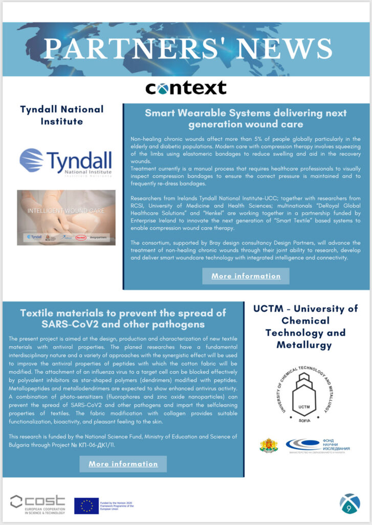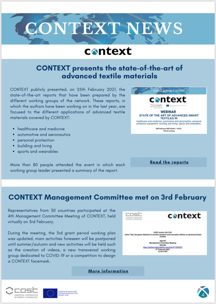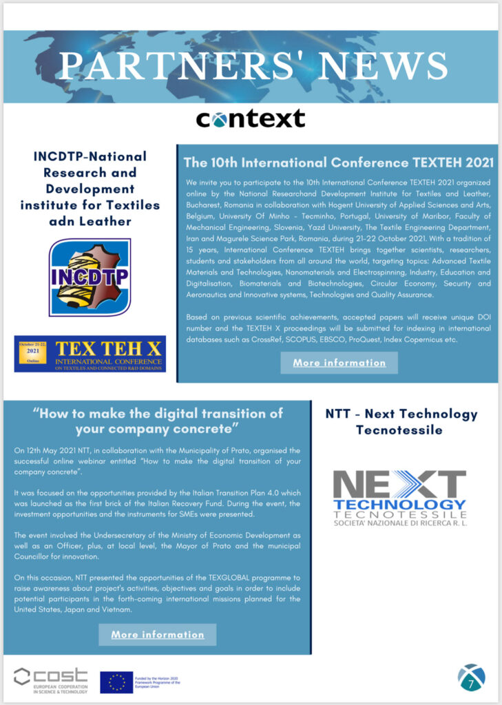 Il network europeo CONTEXT da anni riunisce ricercatori, produttori e le principali parti interessate al fine di sviluppare idee e iniziative comuni che possono essere trasformate in prodotti tessili smart avanzati. All’interno della sua ultima newsletter da poco pubblicata, riporta una breve panoramica della rete, le principali notizie sulle sue attività e le notizie più interessanti per gli operatori del tessile.