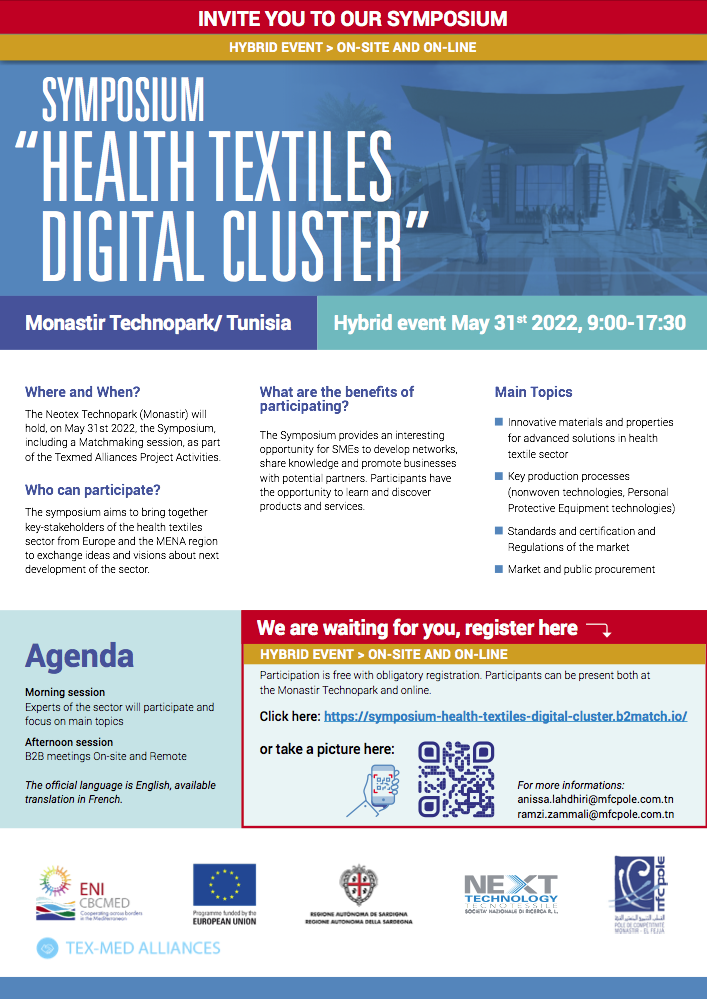 Symposium “Health Textiles Digital Cluster” in Tunisia – HYBRID EVENT on May 31st 2022